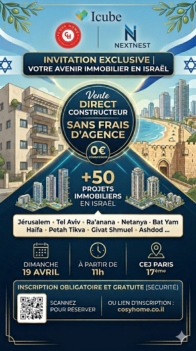 Au programme plus de 50 projets immobiliers dans tout le pays et notamment à Bat Yam * Be’er Ya’akov * Givat Shmuel * Haïfa * Jérusalem * Kiryat Ata * Kiryat Gat * Kiryat Ono * Nahariya * Nesher * Netanya * Petah Tikva * Ra’anana * Ramat Gan * Rehovot * Tel Aviv * Yehud …